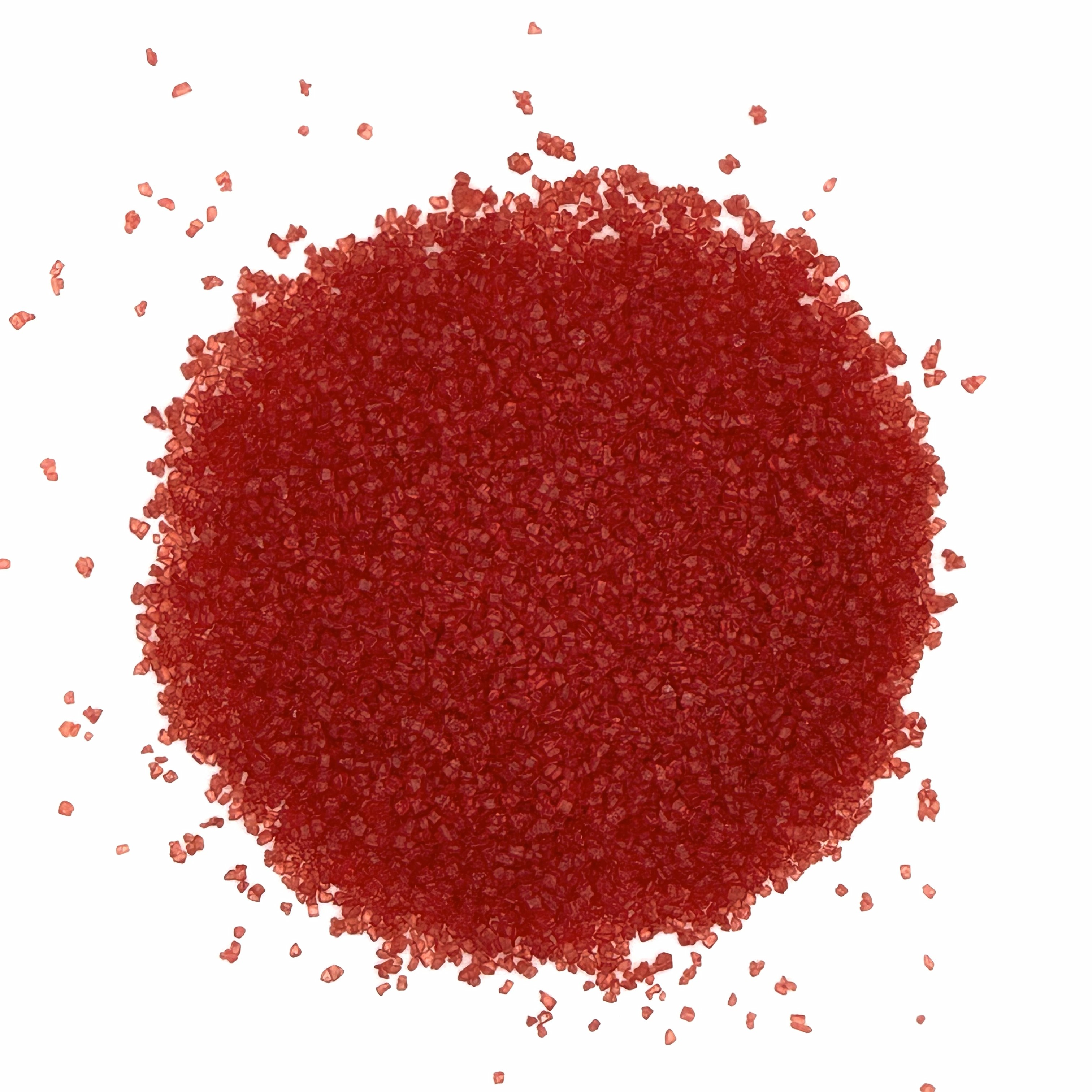 Nature's Palate™ Red Sanding Sugar - Premium, naturally dyed sugar for industrial baking, free from synthetic food coloring. Add a sparkling, sweet crunch to cakes, cookies, cupcakes, and desserts. Made with natural ingredients, this sustainable sanding sugar is ideal for vibrant, high-quality food decorations.
